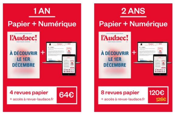 Vous souhaitez soutenir la revue L'Audace en payant votre abonnement plus cher ?