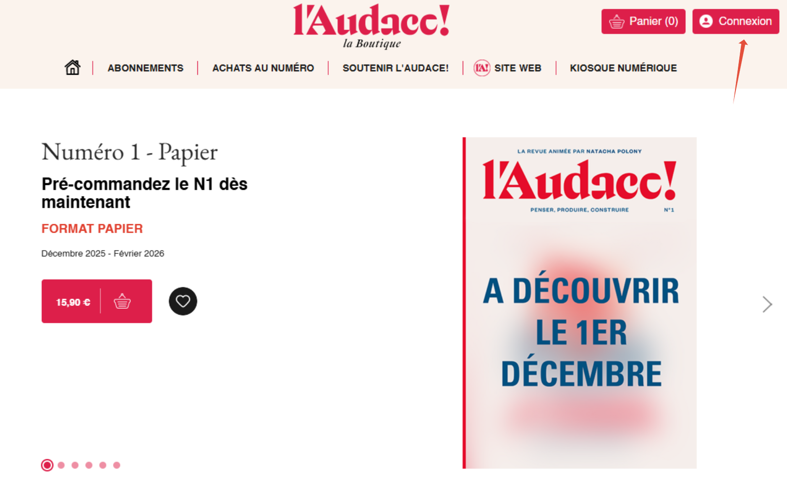 Rendez-vous sur la Boutique L'Audace. Sur la page d'accueil de la Boutique L'Audace, si vous n'êtes pas déjà connecté :