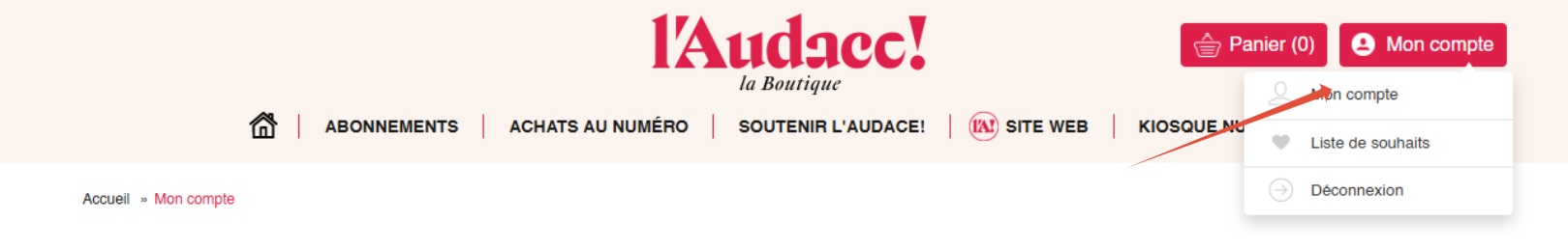 Vous pouvez modifier votre adresse e-mail sur la boutique L'Audace en vous connectant à votre compte client.
